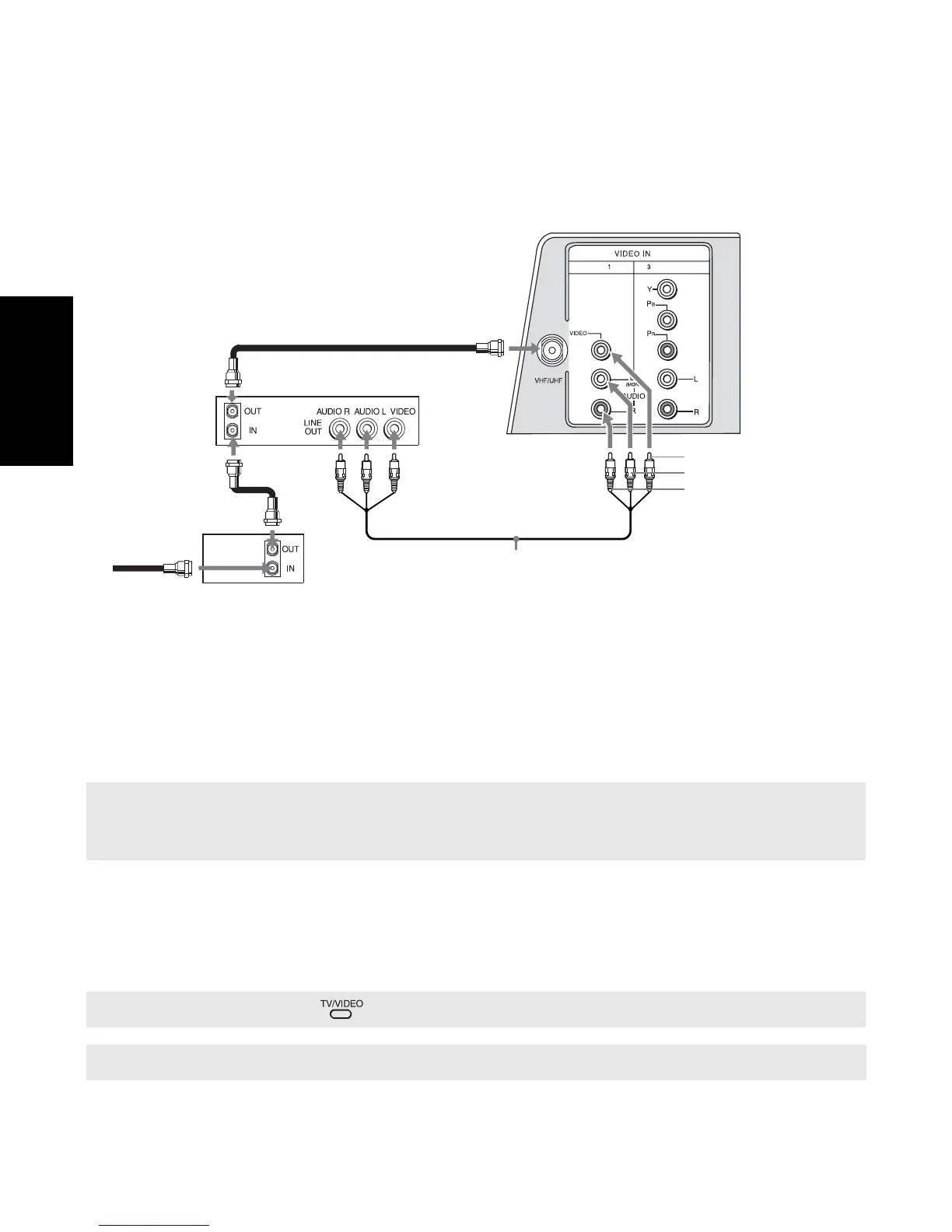 VIDEO OUT de la videograbadora a la toma de entrada AUDIO/VIDEO IN del televisor.