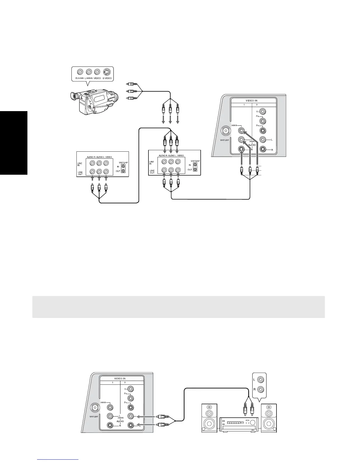 1 Usando los cables de audio/video (no incluidos), conecte el AUDIO IN de su televisor a