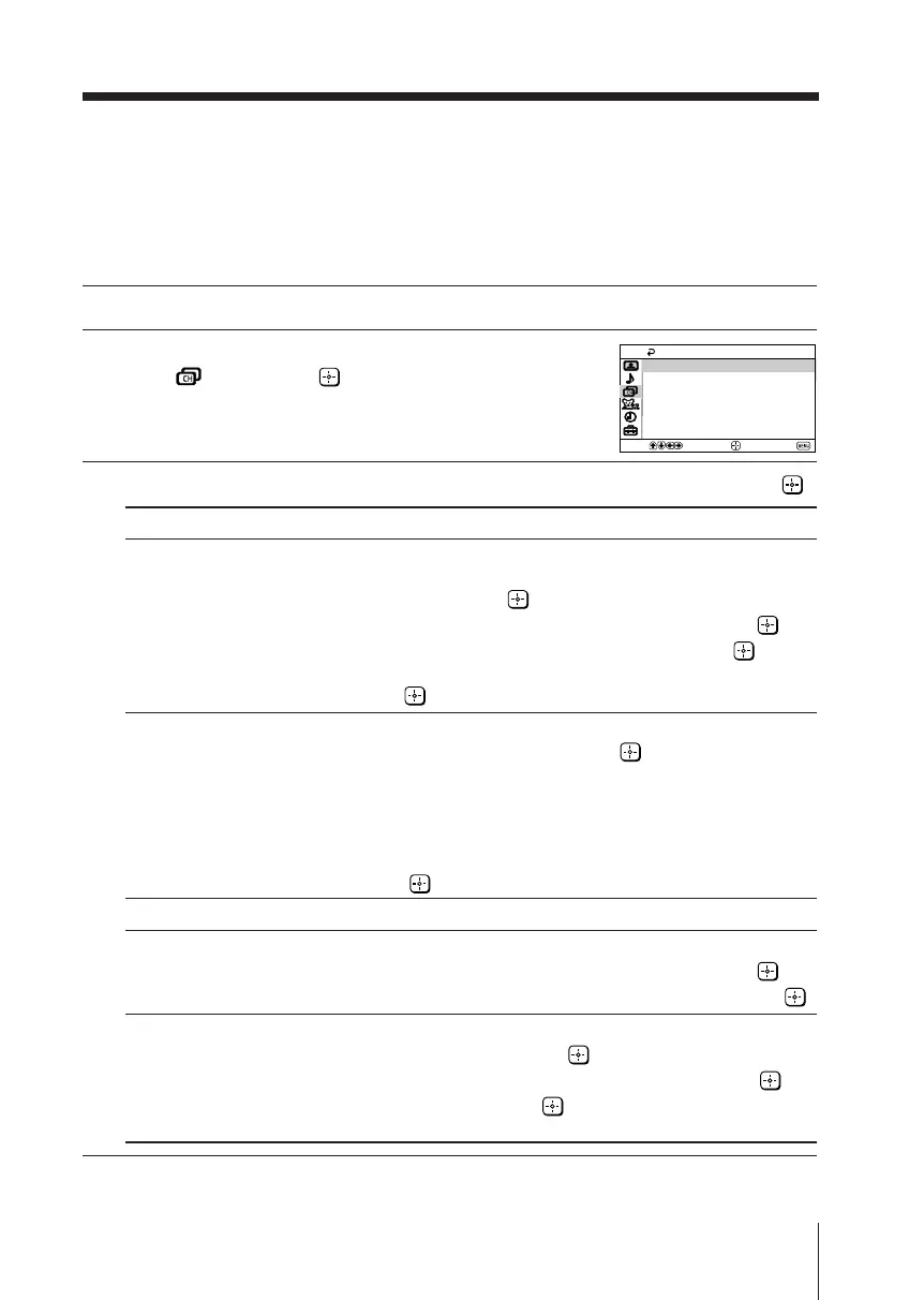 Press V or v to select the desired item (e.g., “Favorite Channels”), then press .