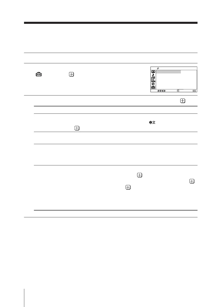 Press V or v to select the desired item (e.g., “Language”), then press .