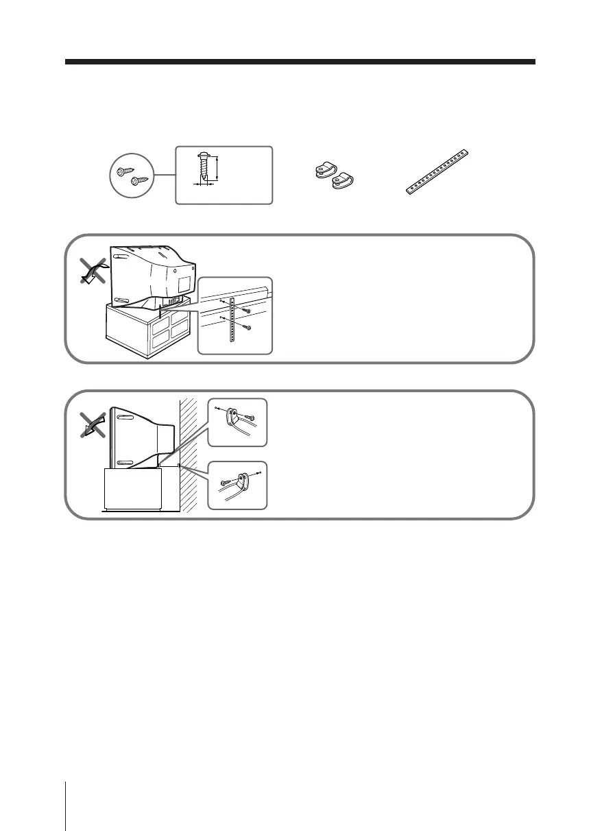 To prevent the TV from falling, use the supplied screws, clamps and band to