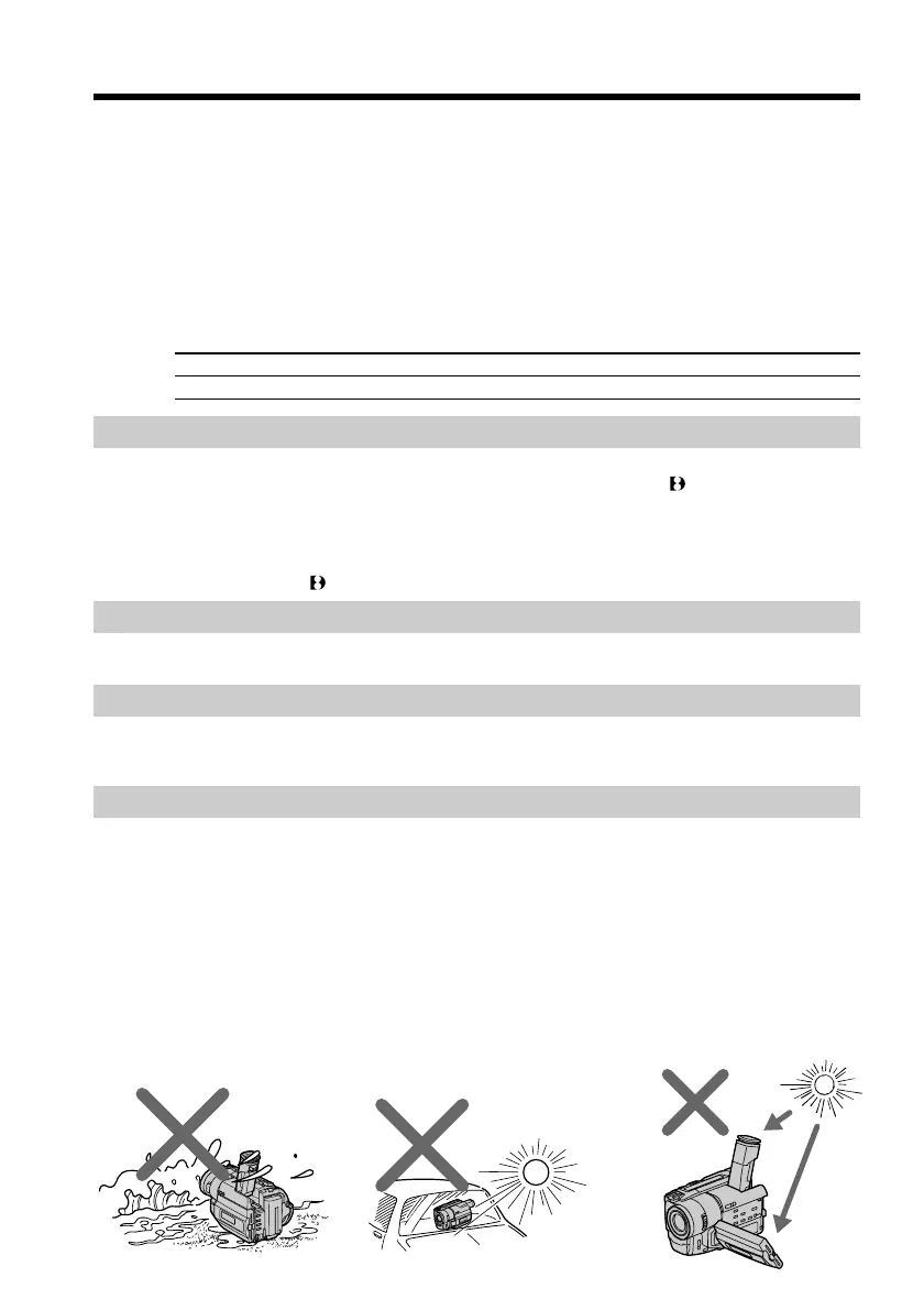 water. Letting your camcorder get wet may cause your camcorder to malfunction.