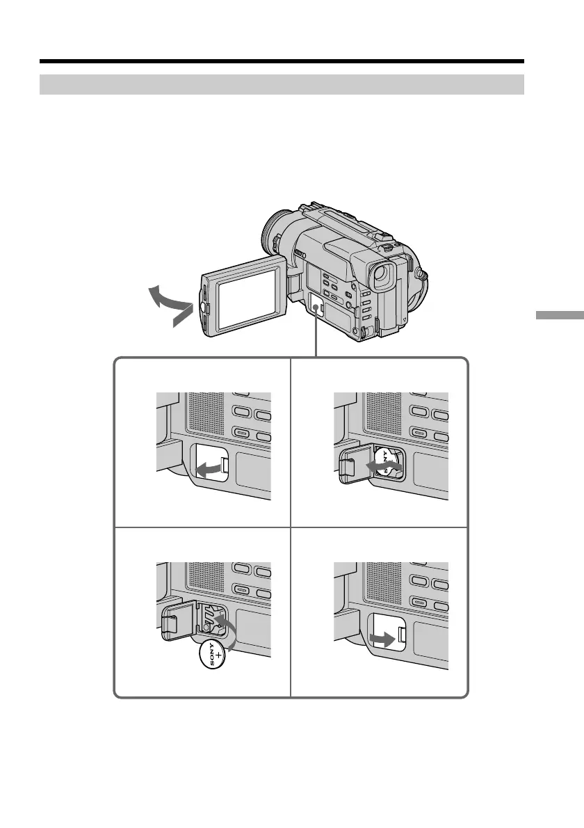 (1) Open the LCD panel and open the lid of the lithium battery compartment.