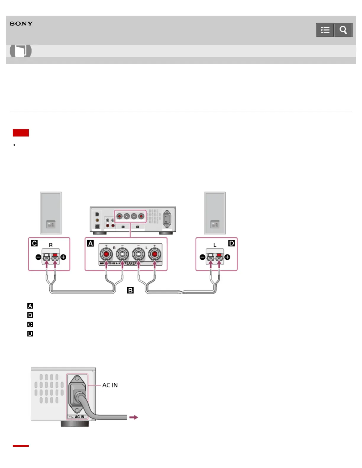 : Speaker cords (not supplied)