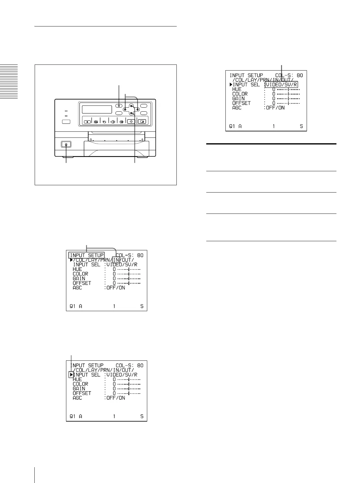 then the INPUT SETUP menu appears.