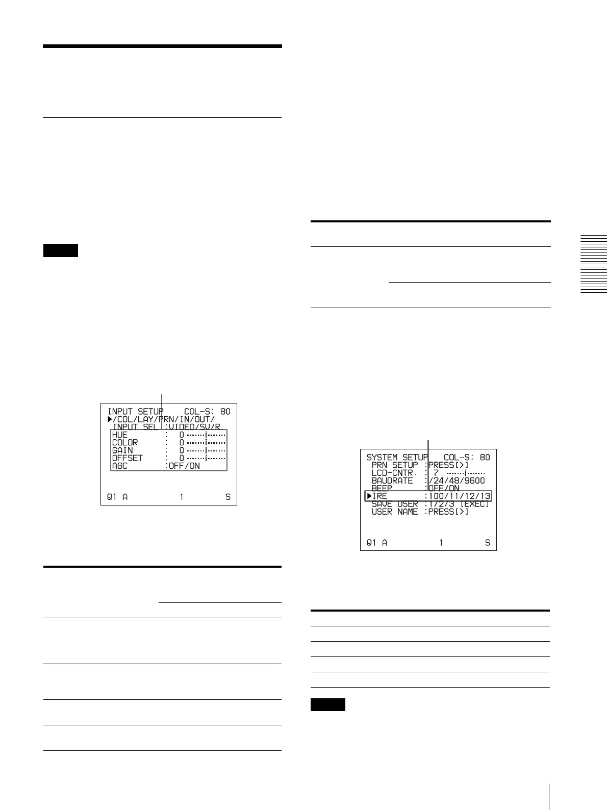 elemento IRE del menú SYSTEM SETUP.