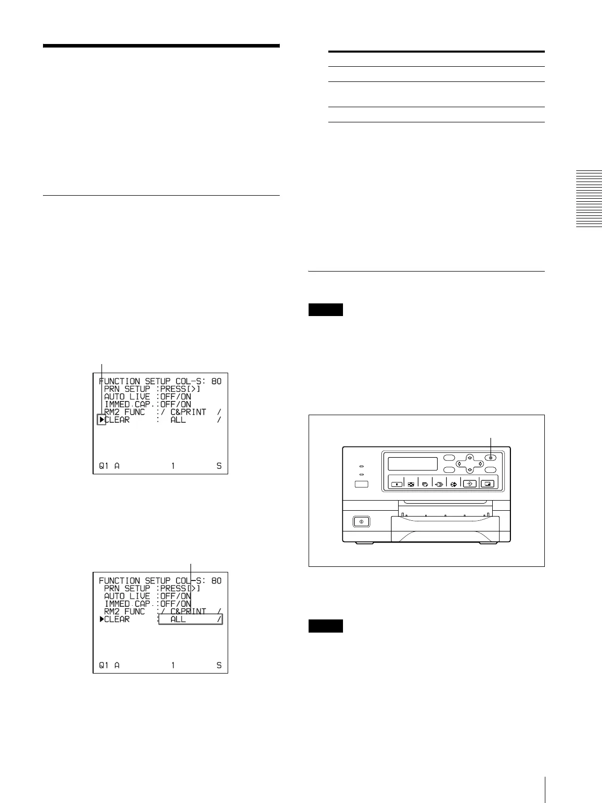 CLEAR in the FUNCTION SETUP menu.