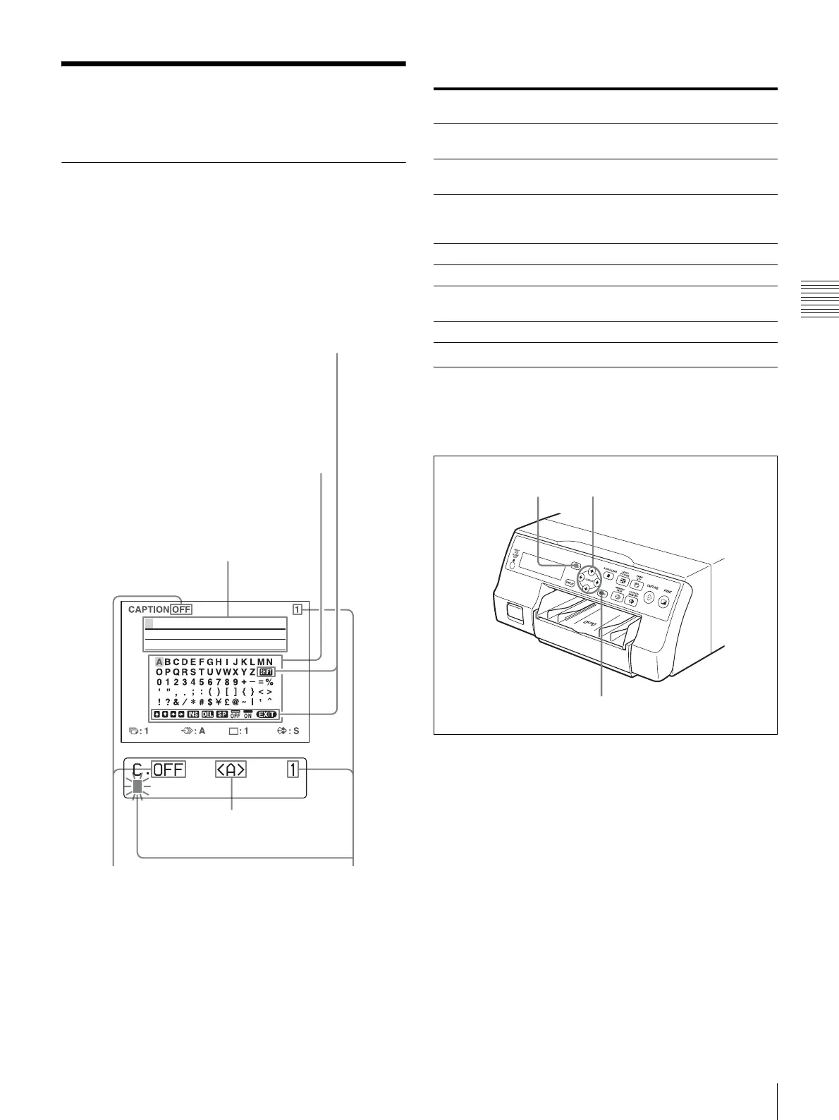 A brief explanation of each item of the CAPTION menu is