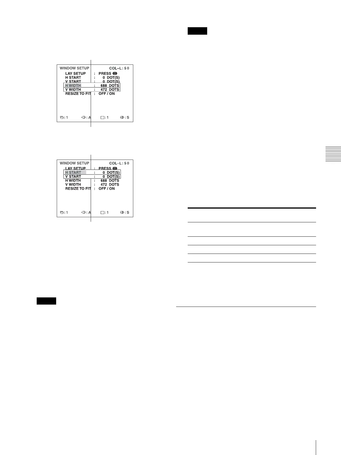 For H START, H WIDTH, V START and V WIDTH