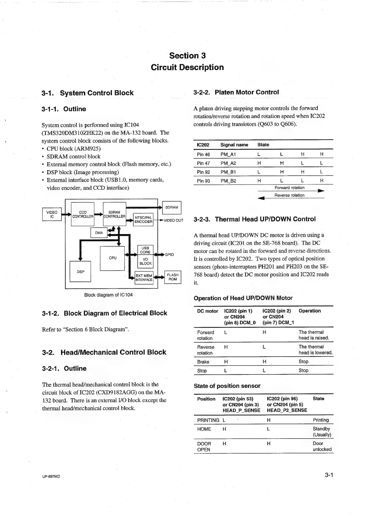 Sony UP-897MD - Circuit Description