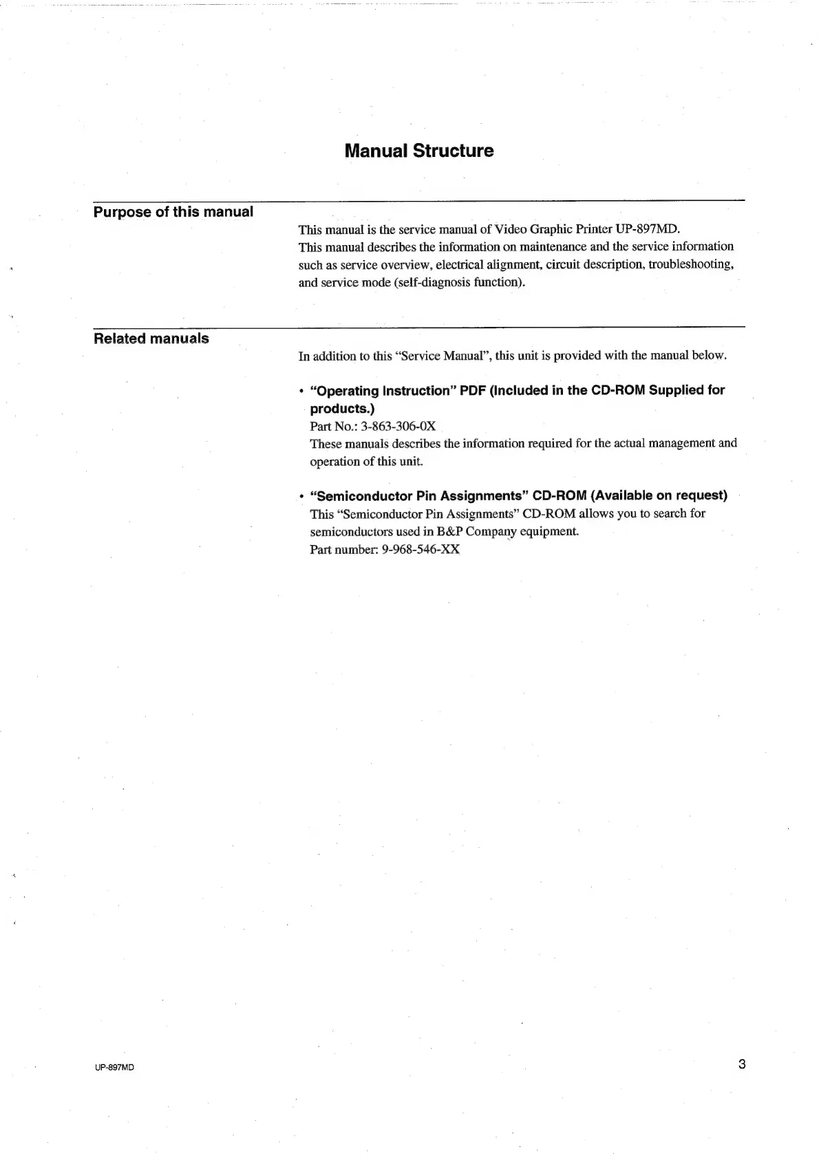 Sony UP-897MD - Manual Structure; Purpose of this Manual; Related Manuals