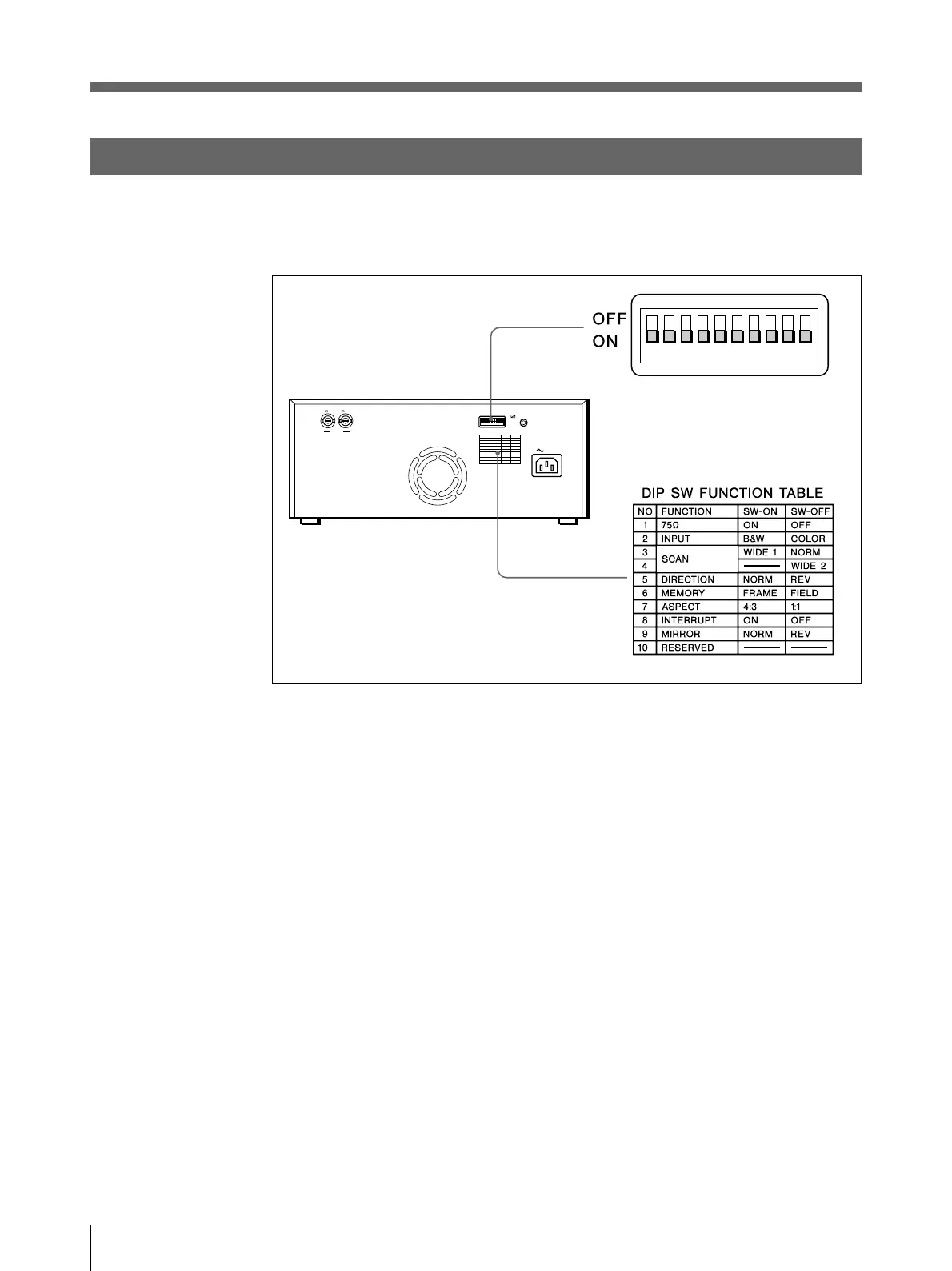 下図は工場出荷時の各スイッチの位置を示します。また、下図は工場出荷時の設定を表わしてい