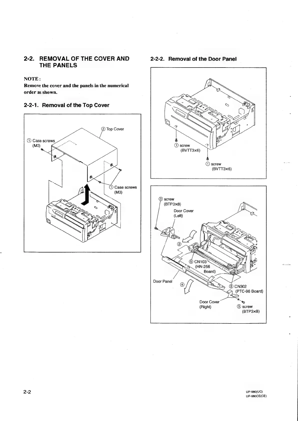Sony UP-980 - 2-2. REMOVAL OF THE COVER AND THE PANELS
