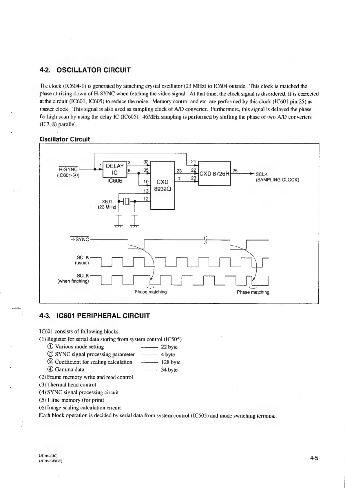 Sony UP-980 - 4-2. OSCILLATOR CIRCUIT; 4-3. IC601 PERIPHERAL CIRCUIT