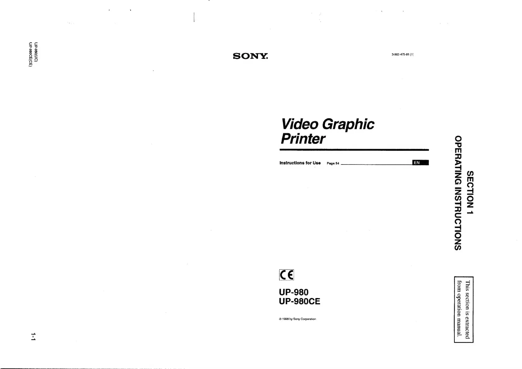 Sony UP-980 - SECTION 1 OPERATING INSTRUCTIONS; Introduction; Operation; Connection and Adjustment
