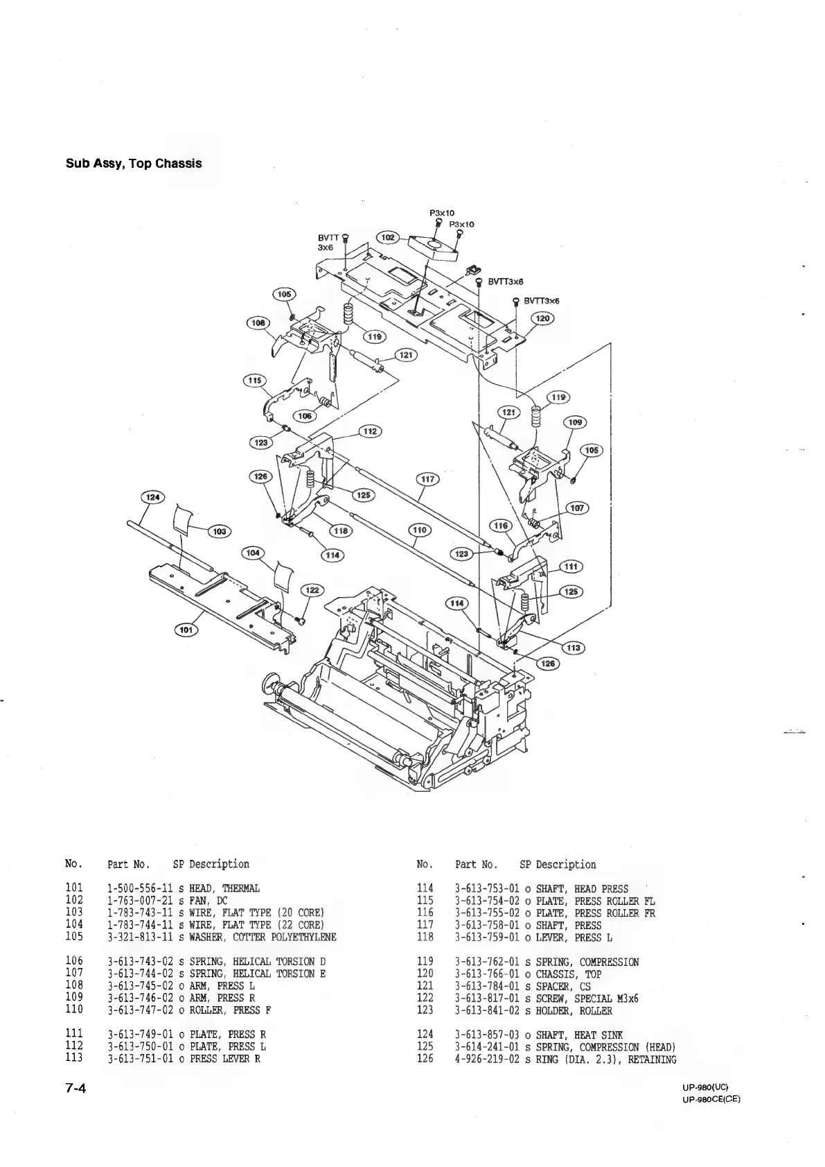 Sony UP-980 - Sub Assy, Top Chassis