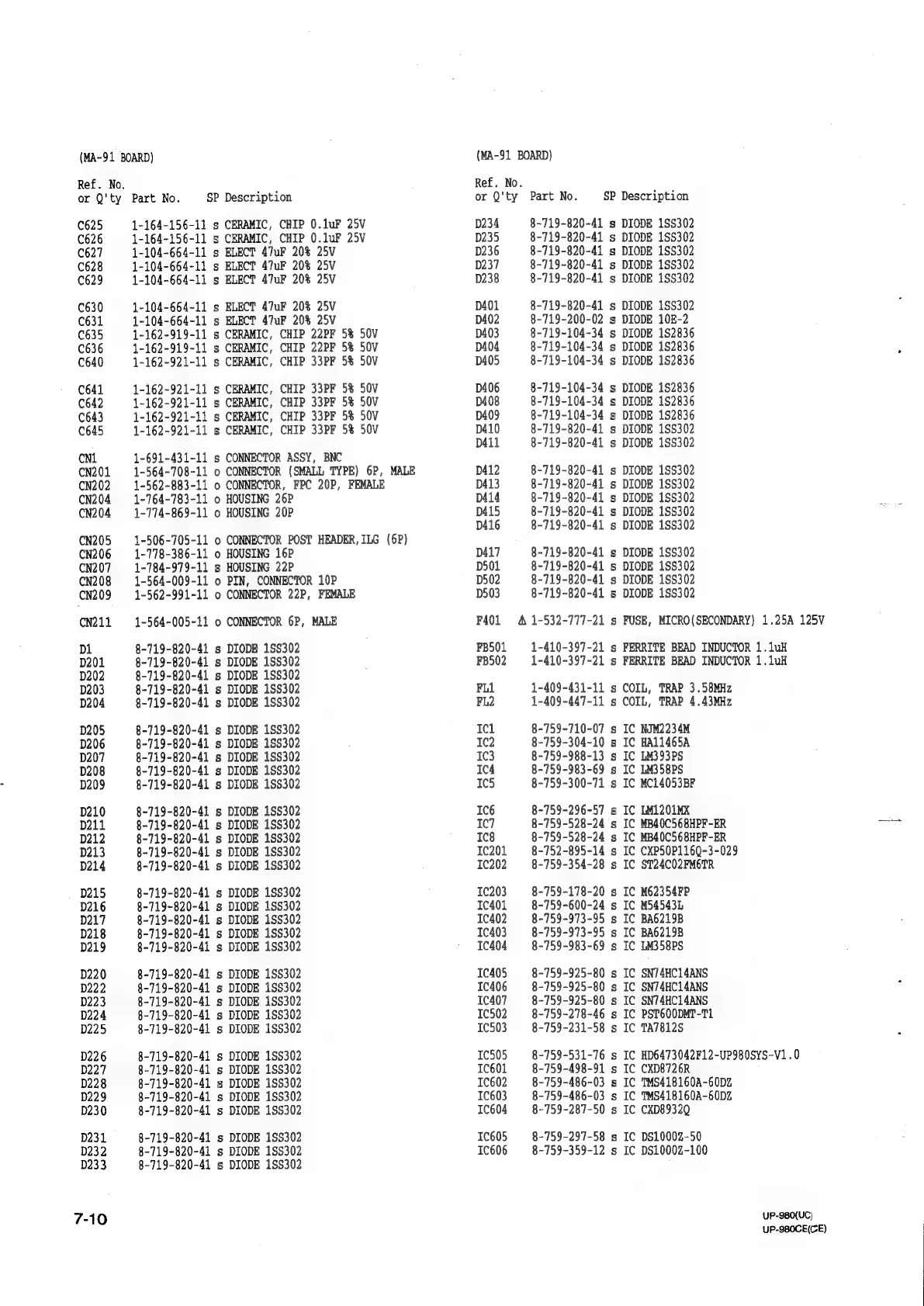 Sony UP-980 - (MA-91 BOARD) - Electrical Parts List