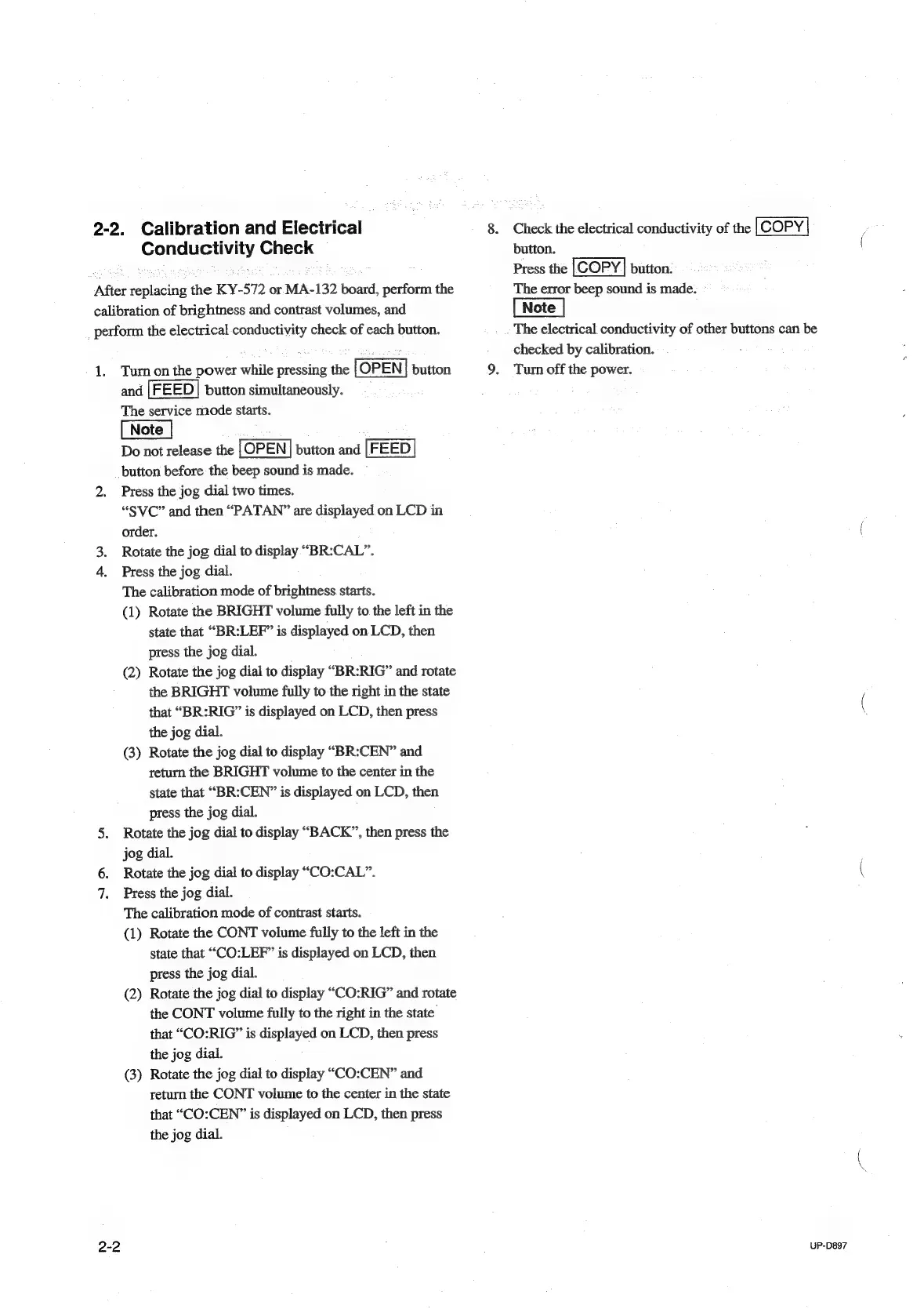 Sony UP-D897 - 2-2. Calibration and Electrical Conductivity Check
