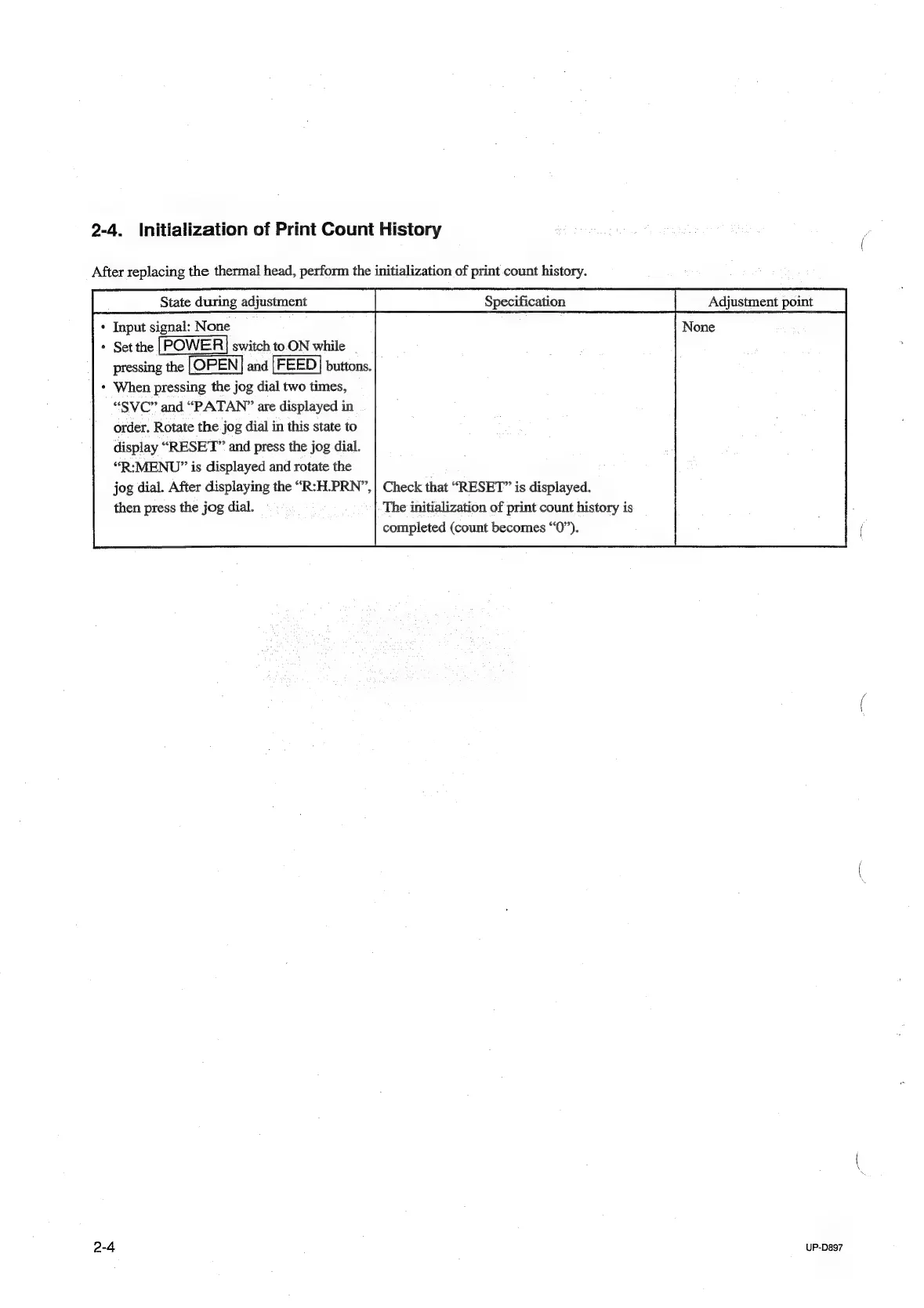 Sony UP-D897 - 2-4. Initialization of Print Count History