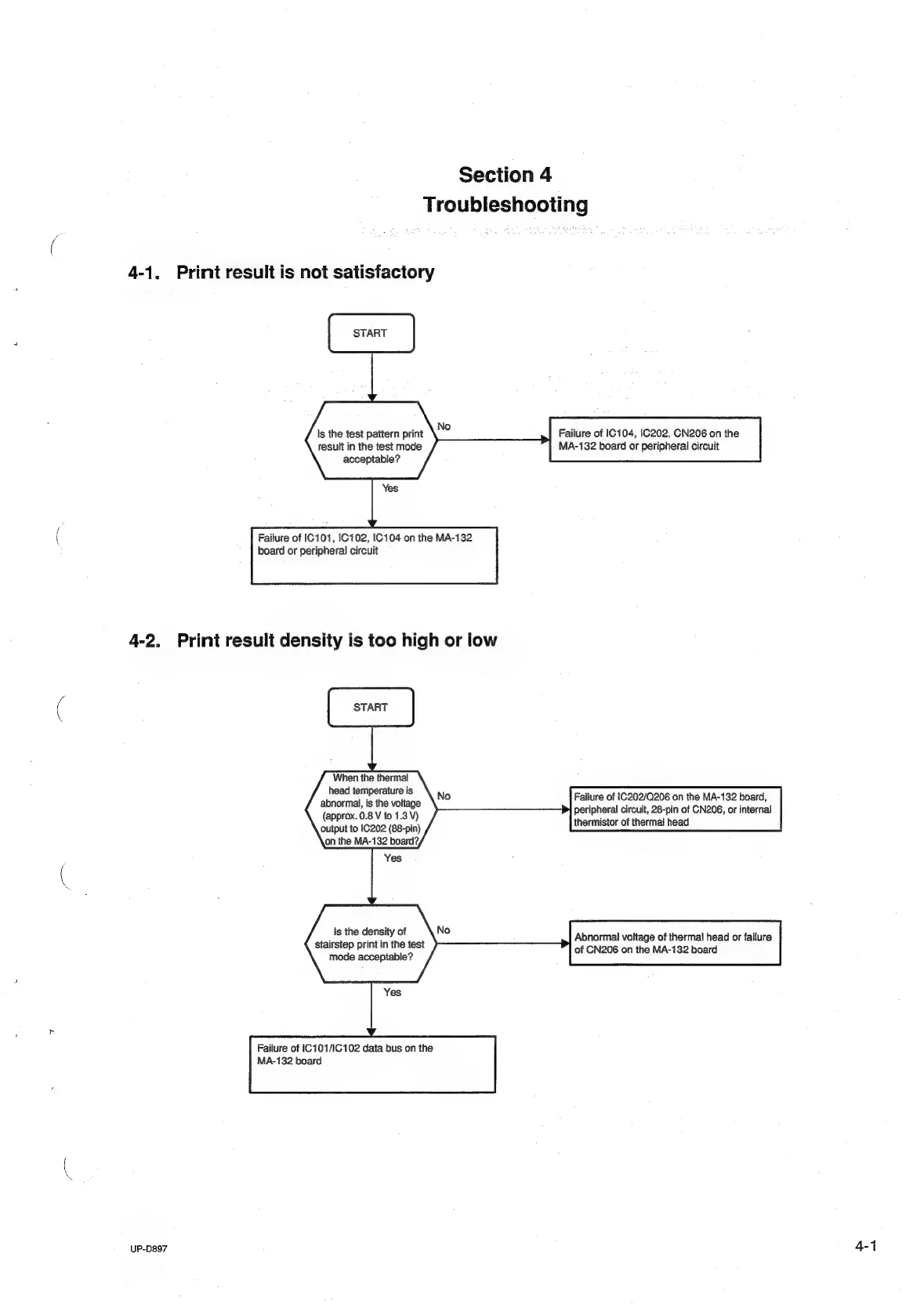 Sony UP-D897 - Troubleshooting; 4-1. Print result is not satisfactory; 4-2. Print result density is too high or low