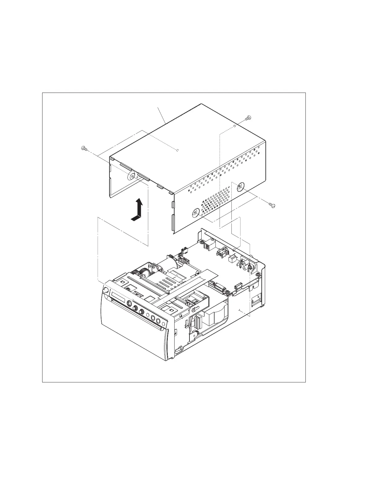 1. Remove the five screws, then remove the top cover in the direction of the arrow.