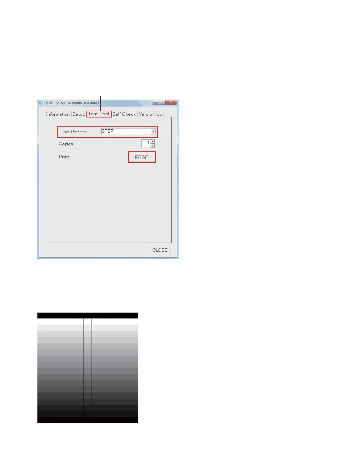 1. Select “STEP” from the drop-down list of “Test Pattern” of the Test Print tab.