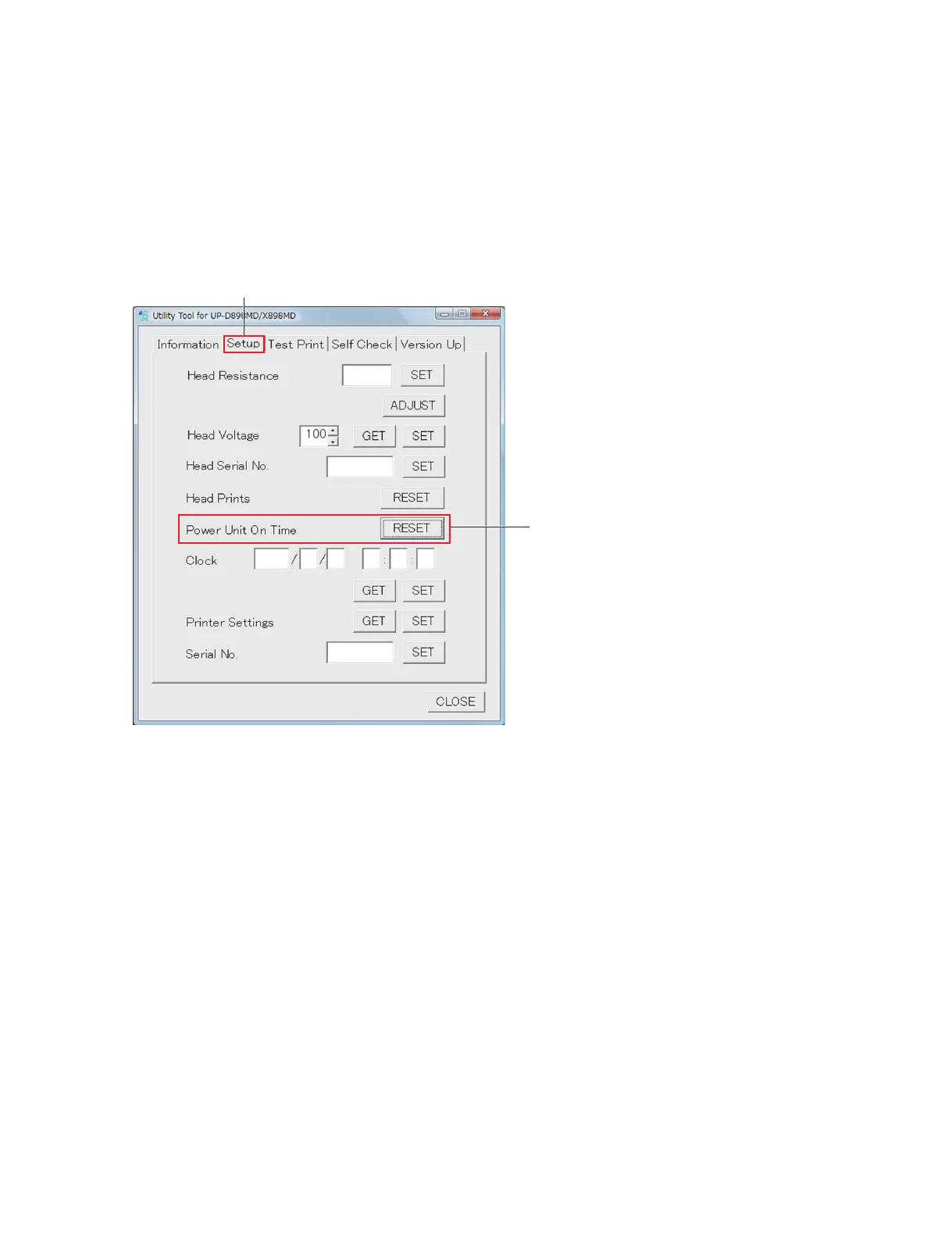 2. Click the [RESET] button of “Power Unit On Time” of the Setup tab.