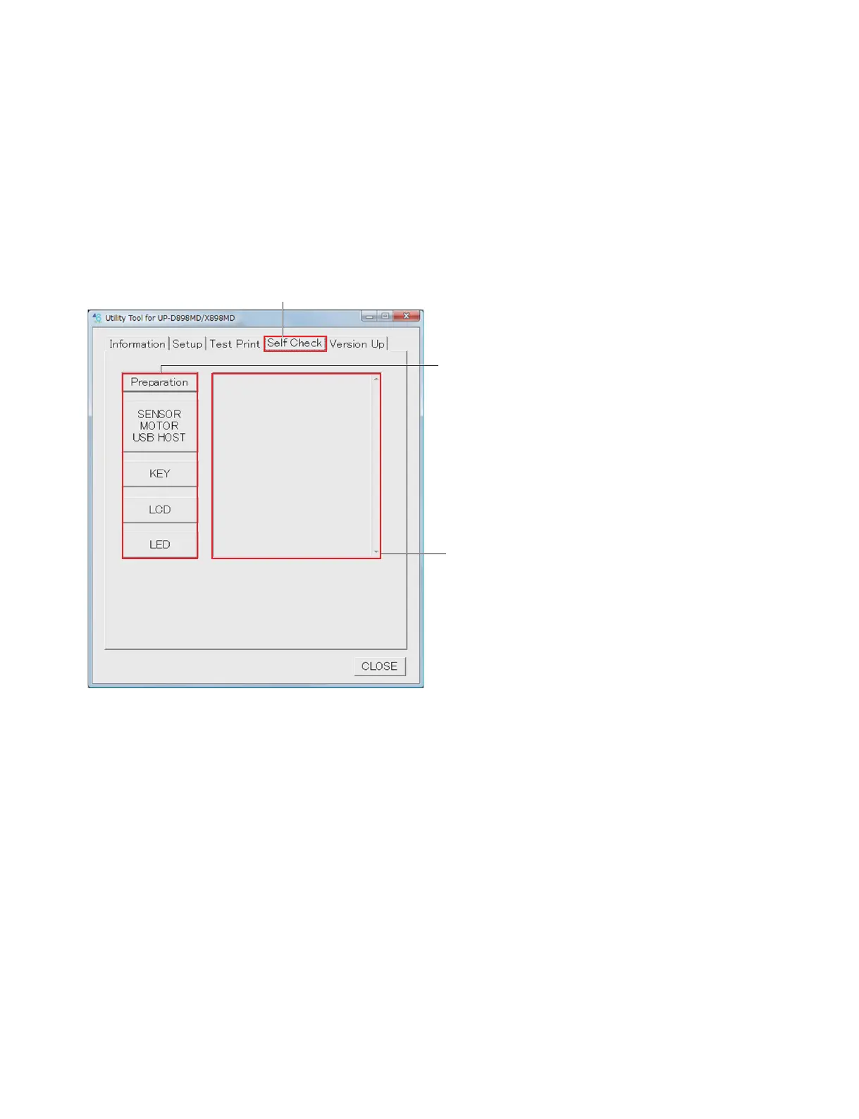 “Before Checking …Eject the paper, Close the door. Insert USB Flash Drive. (UP-X898MD only)” is