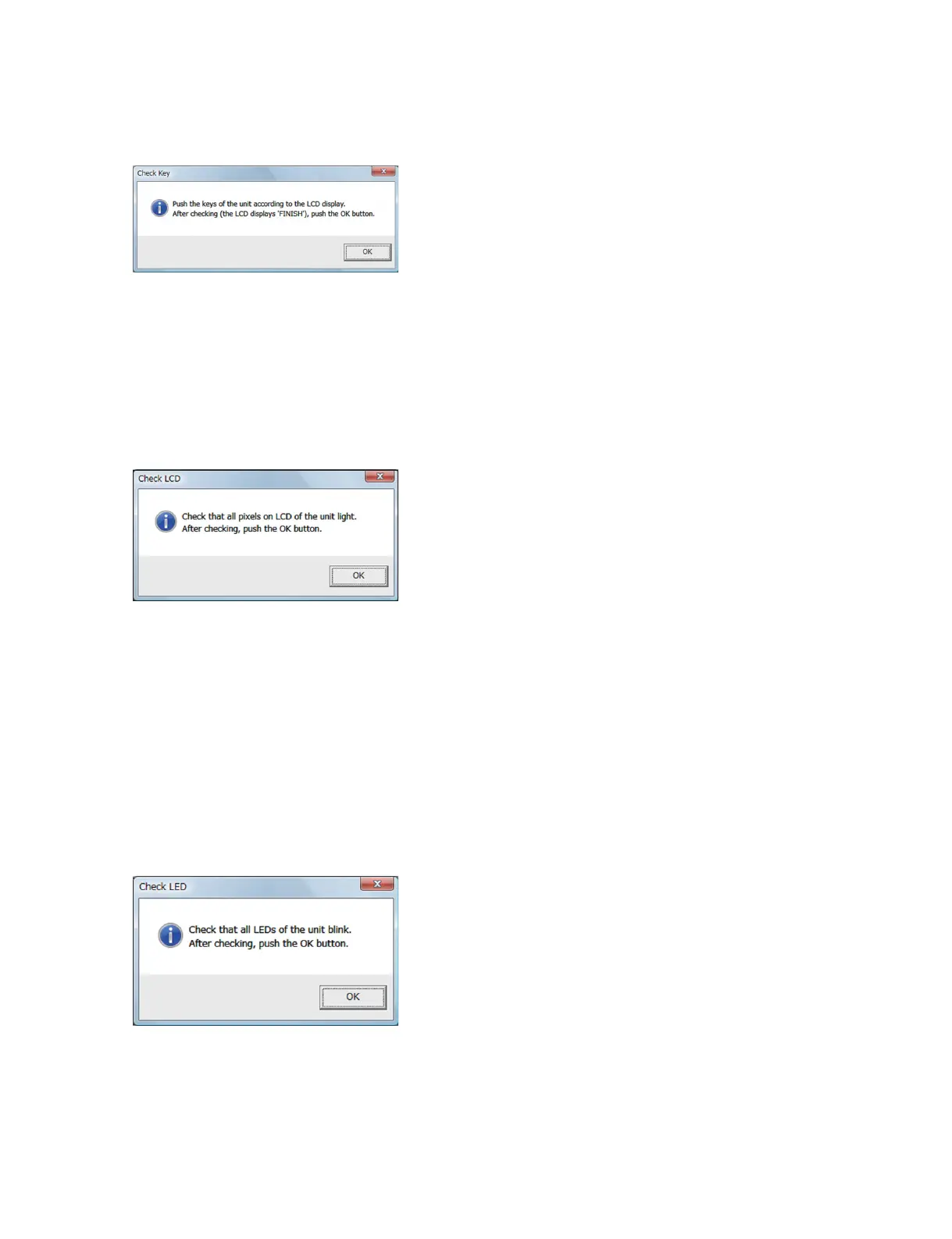 10. Click the [OK] button of the Check LCD screen to close the screen.