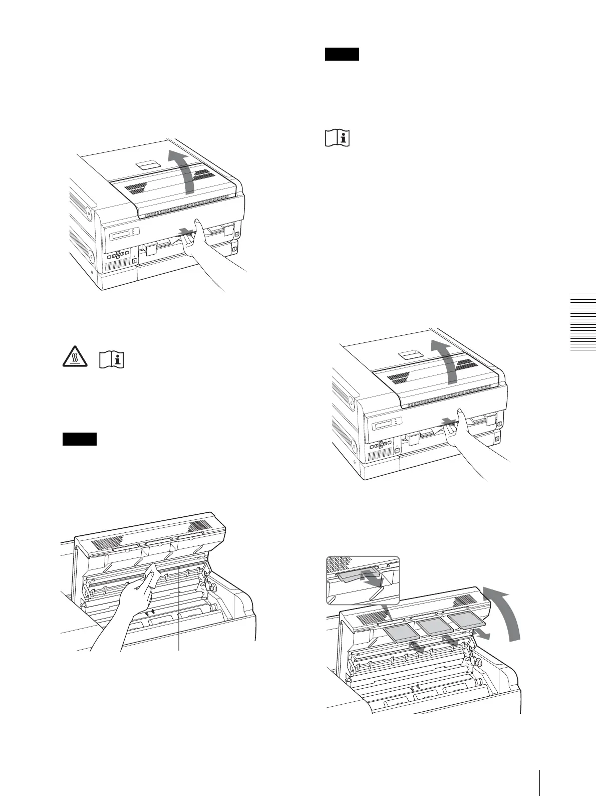 printing finishes, and touching the head may cause