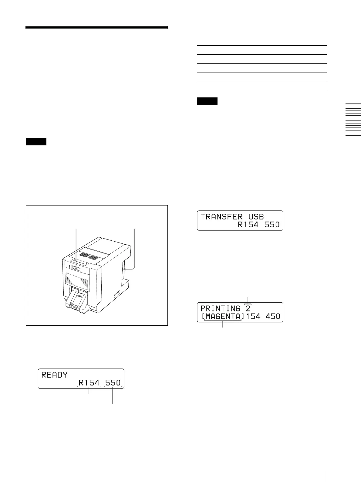 displayed on the LCD, the printer is ready to print.