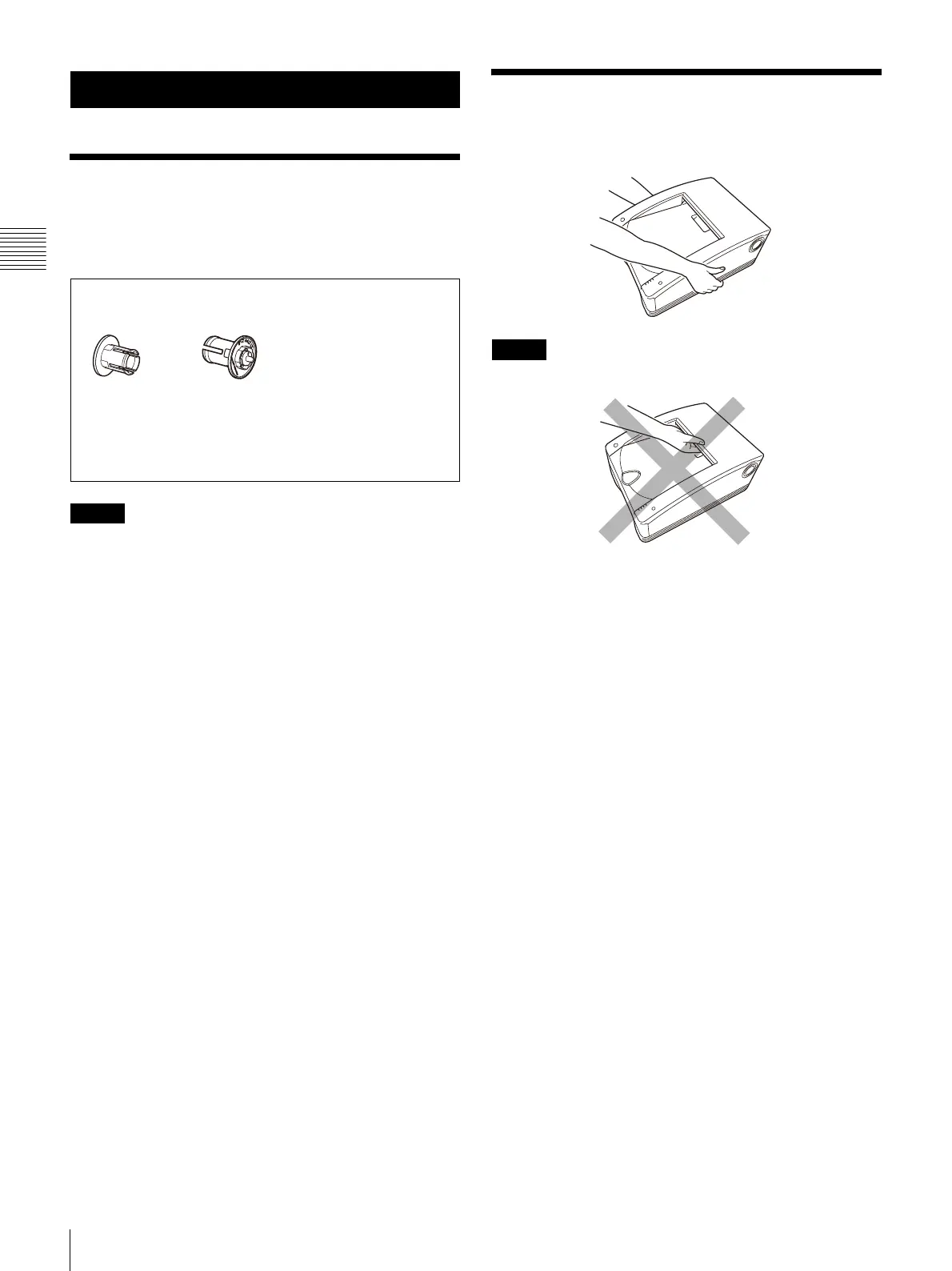 NEVER handle or lift the printer as shown.