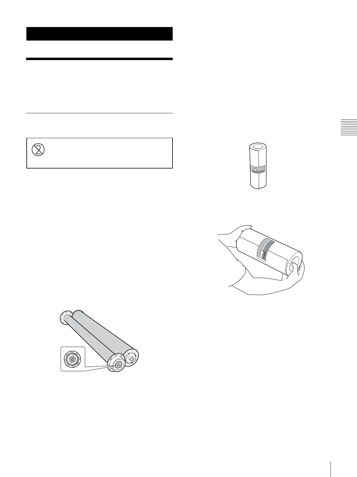 • Always hold a paper roll securely with two hands.