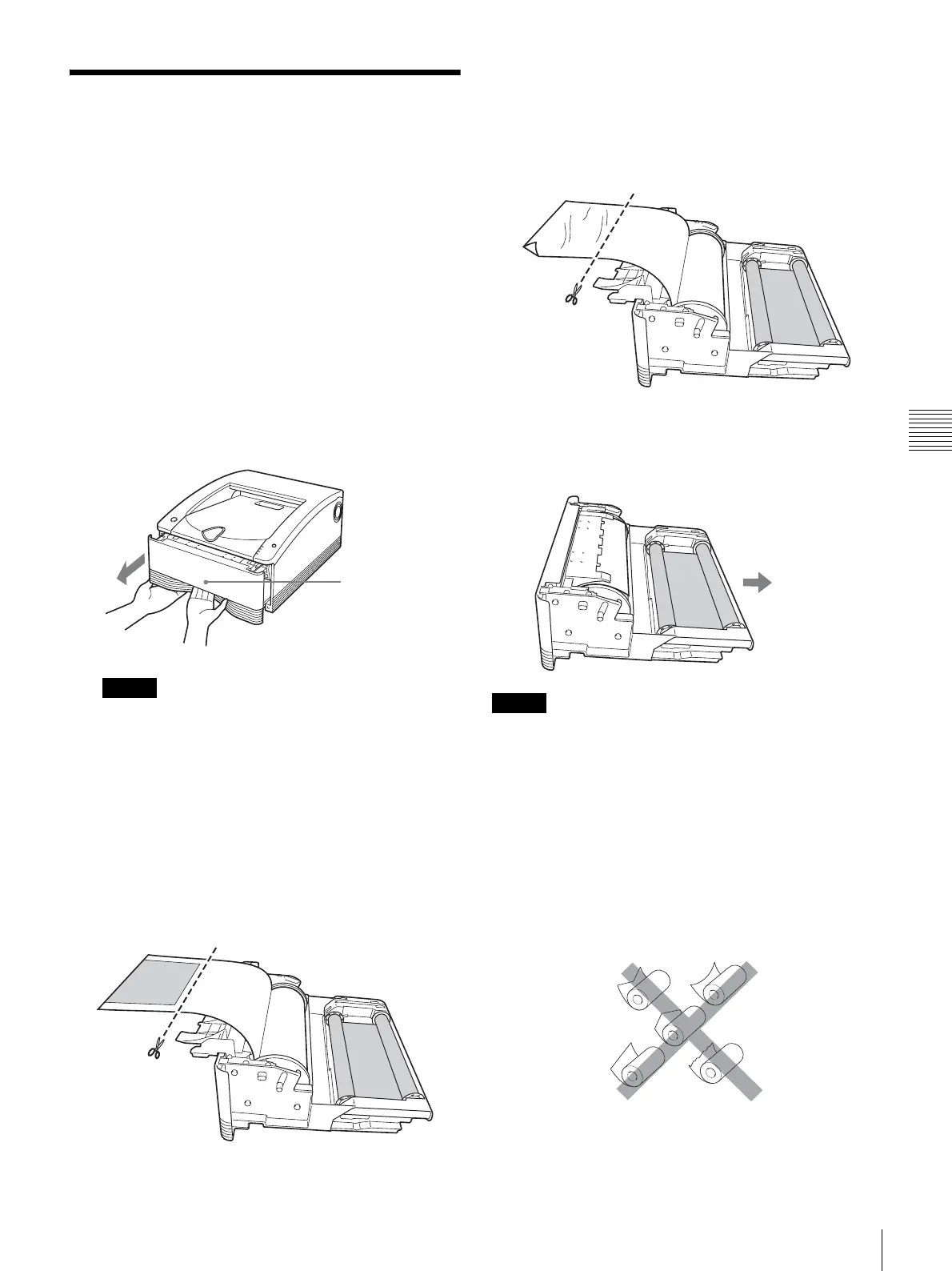 • When cutting the paper roll, be sure to cut so that the