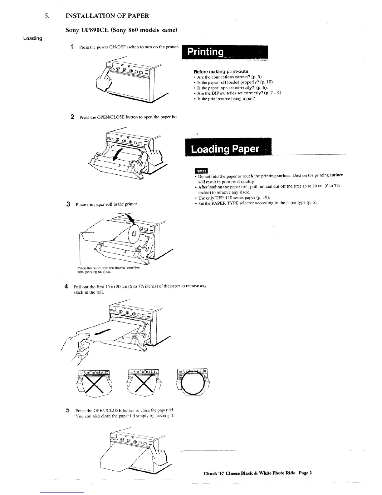 Sony UP860 - Paper Installation; Loading Paper Procedure