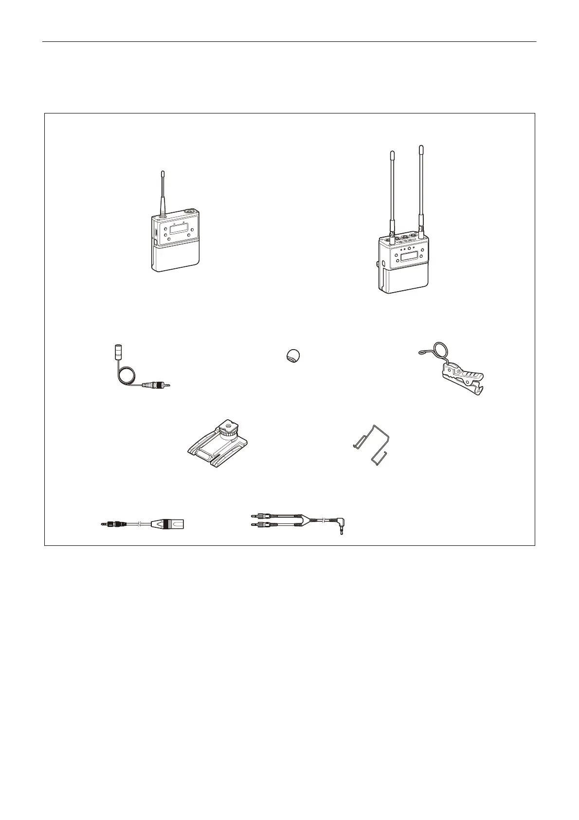 The package consists of two body-pack transmitters (UTX-B40), a portable diversity tuner (URX-P41D) that can receive