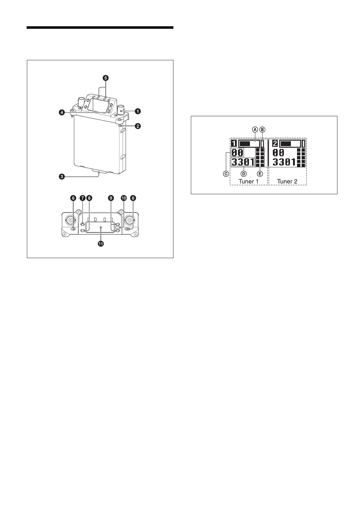 power status of tuner 1 and tuner 2, respectively.