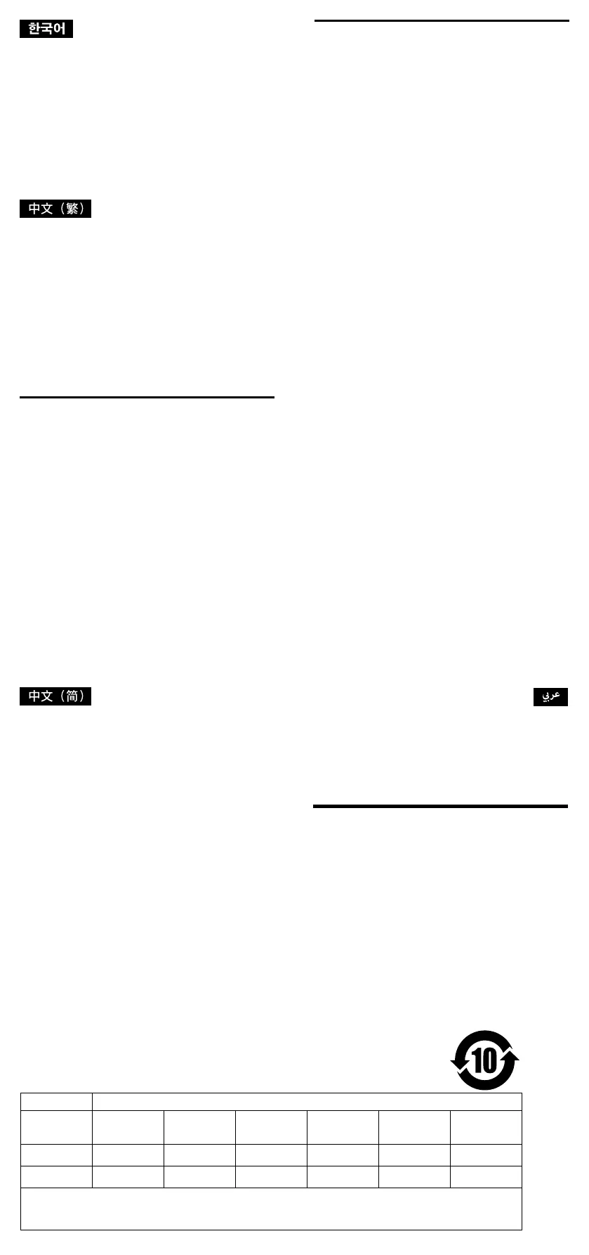 部件名称 铅 (Pb) 汞 (Hg) 镉 (Cd) 六价铬