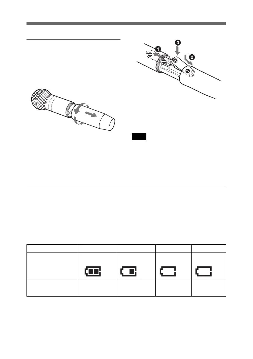 When the indication in column 4 starts to flash, replace the batteries with new