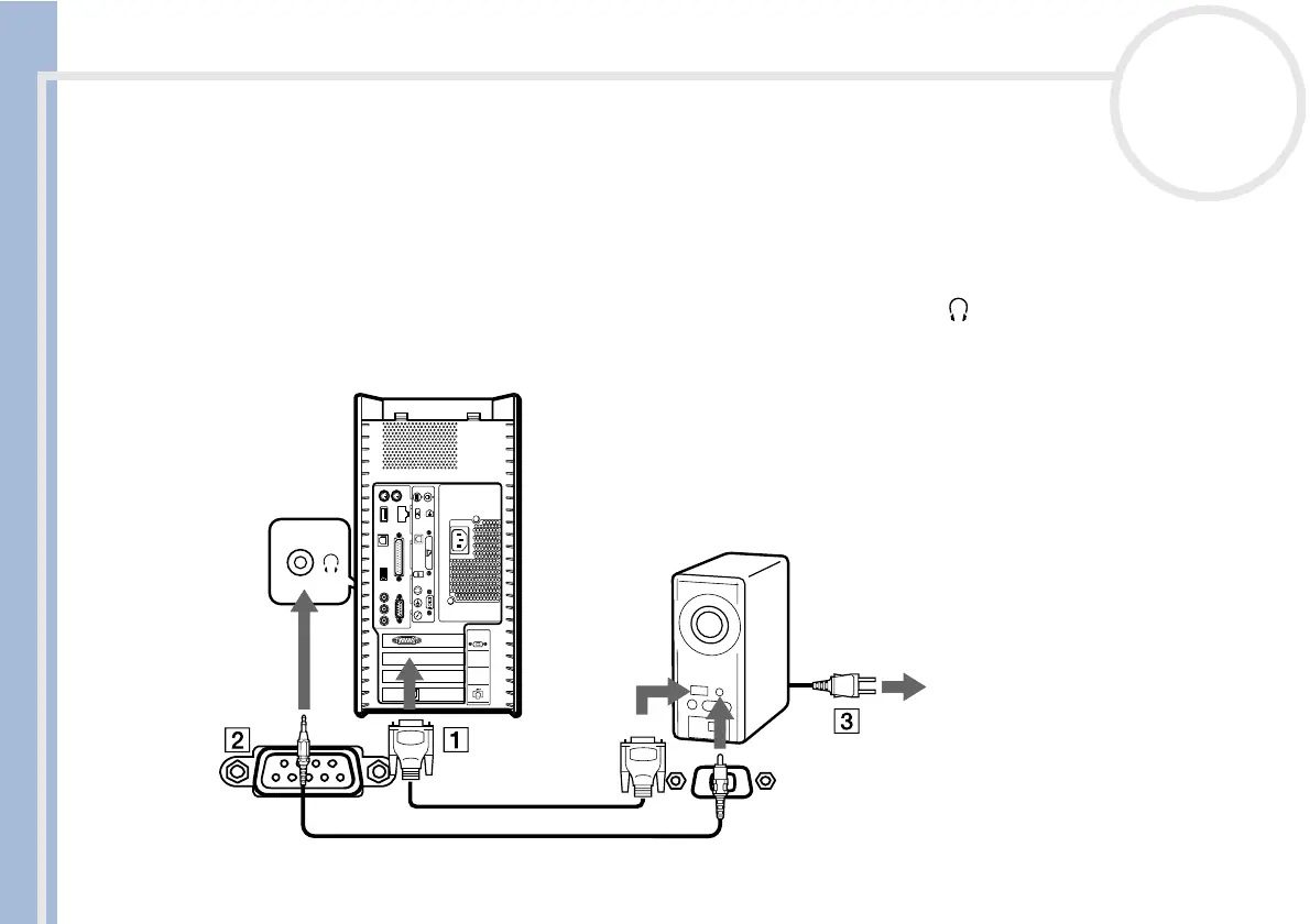 2 Plug the audio cable into the headphones connector identified by the symbol (2).