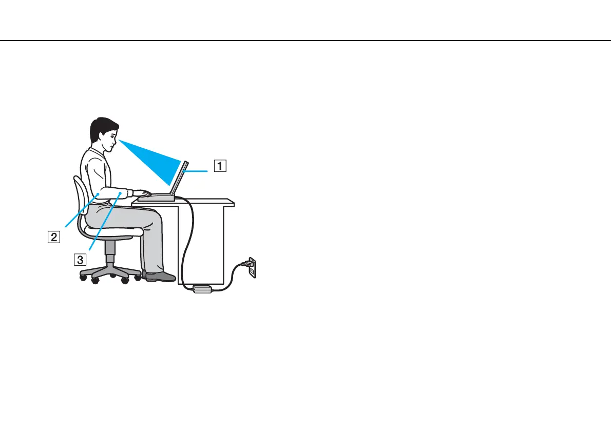 naturally at your sides. Take frequent breaks while using your computer. Excessive use of the computer may strain eyes,