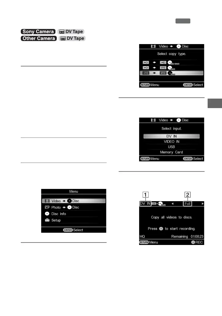 insert a disc (page 29) and connect a DV