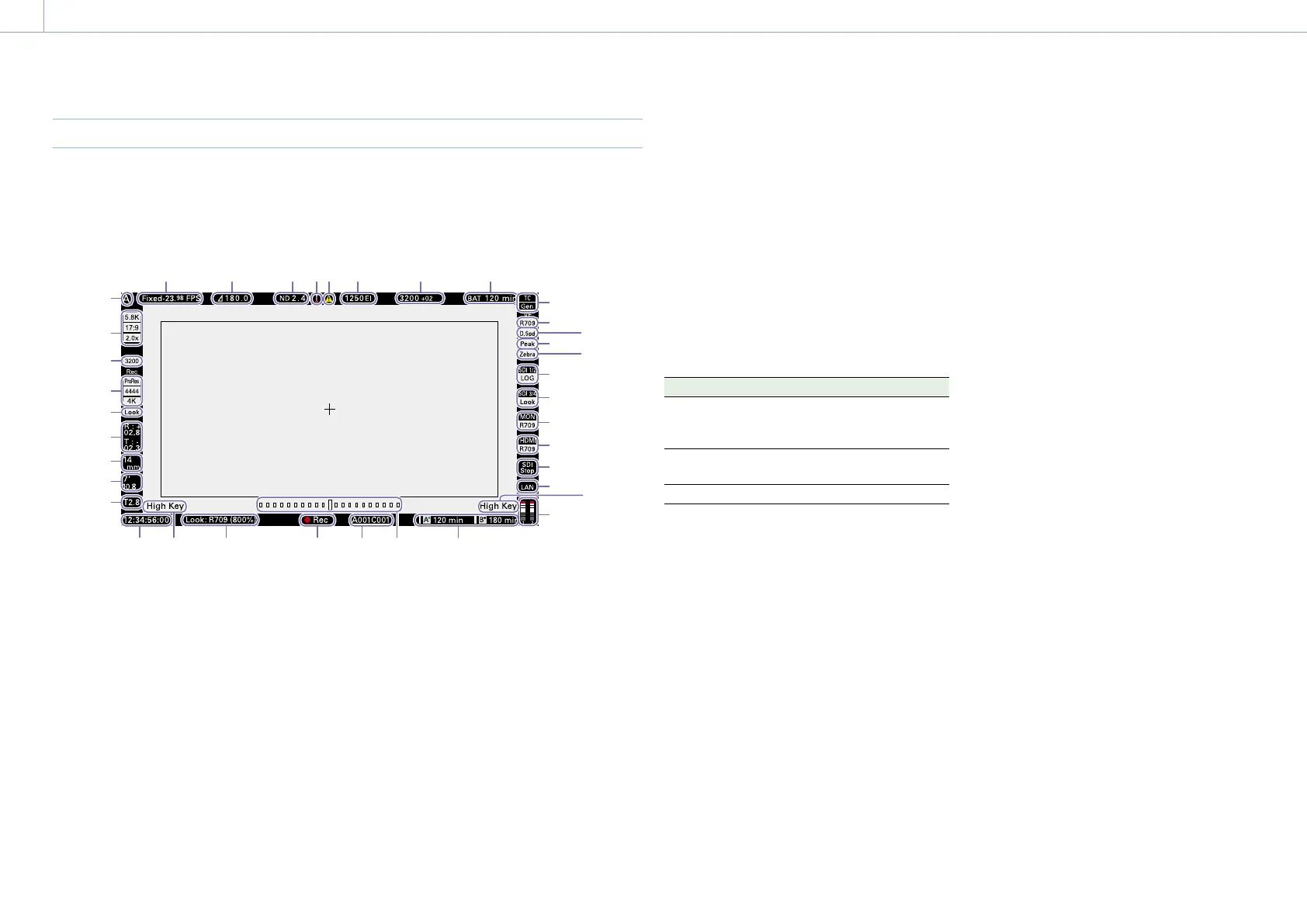 Displays the viewfinder LUT (page 70).