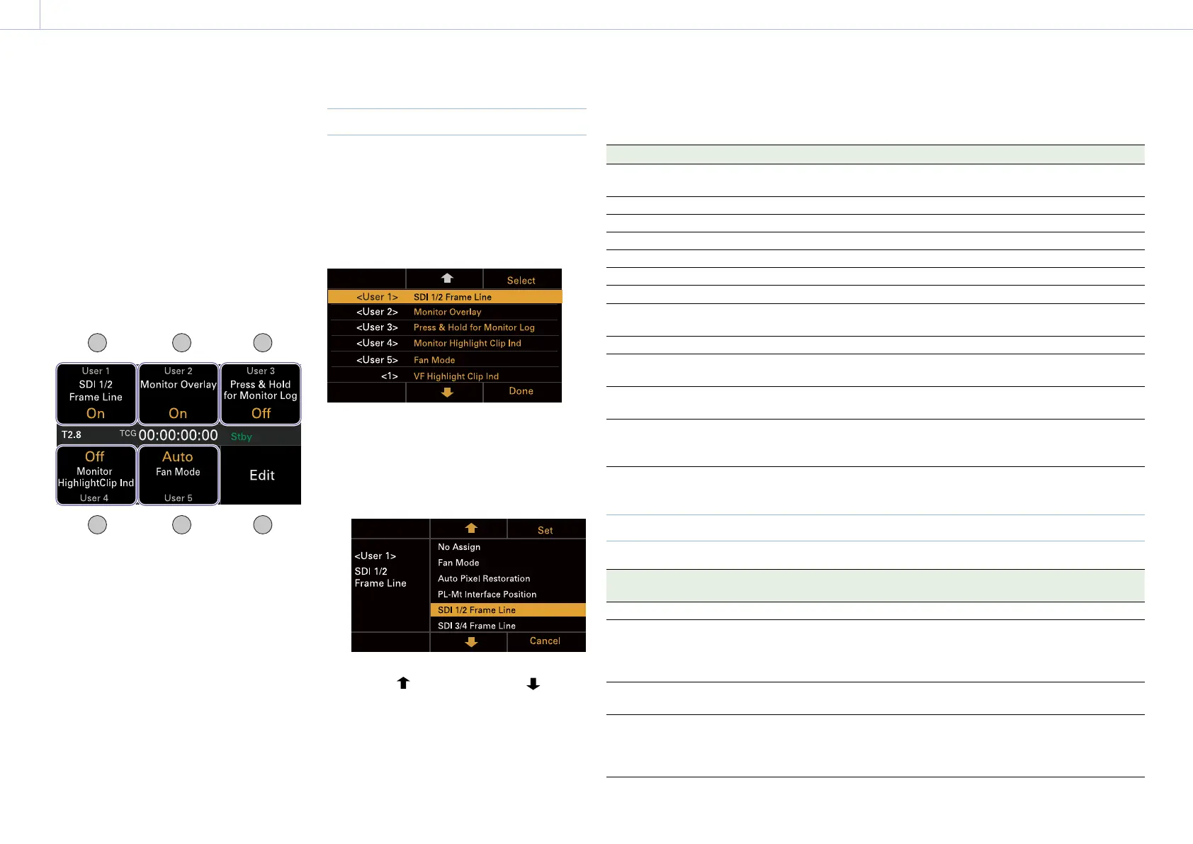 assignable buttons (User 1 to 5).