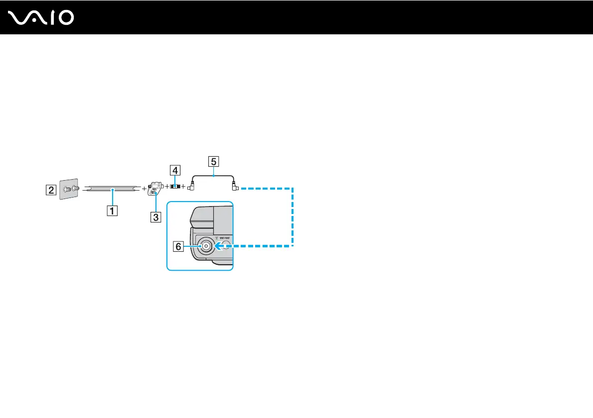 3 Connect one end of a TV coaxial cable (5) to the feed connector (4). Connect the other end to the VHF/UHF input port