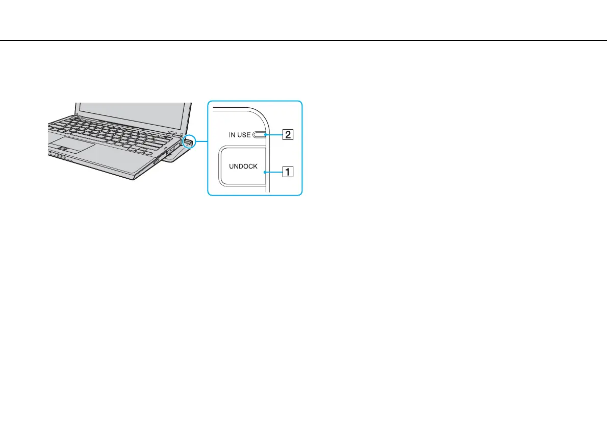 1 Press the UNDOCK button (1) and wait until the IN USE indicator light (2) turns off.