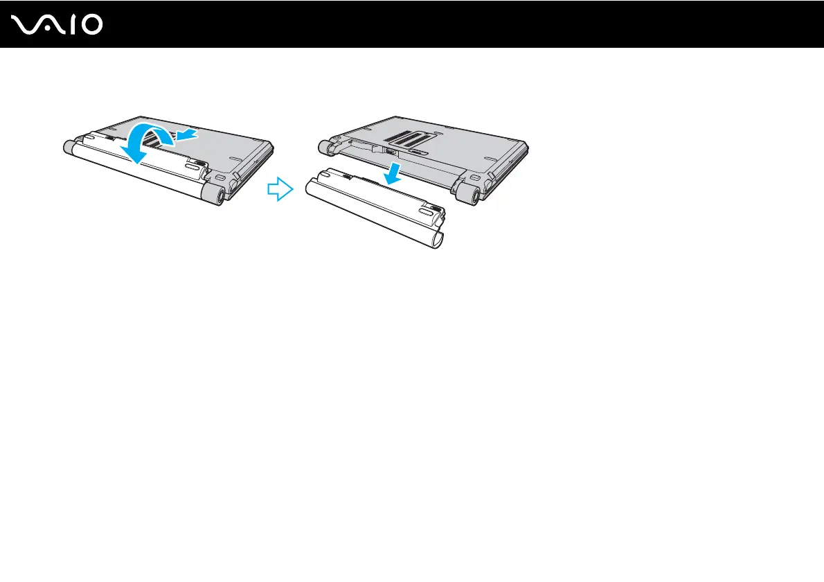 3 Pull out the battery pack slightly, rotate it in the direction of the arrow, and then slide it away from the computer.