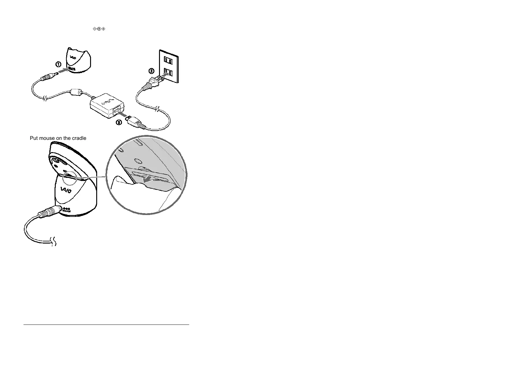 1 Connect cradle DC IN 5.2 V connector to AC adapter ①、AC And