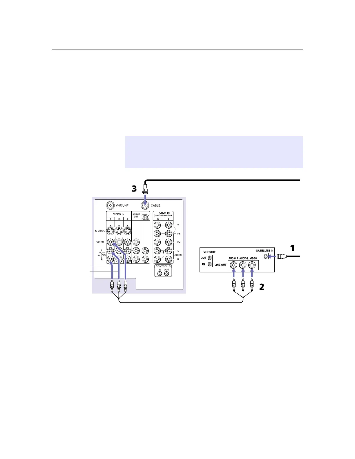 Using an A/V cable, connect the satellite receiver’sAudioand