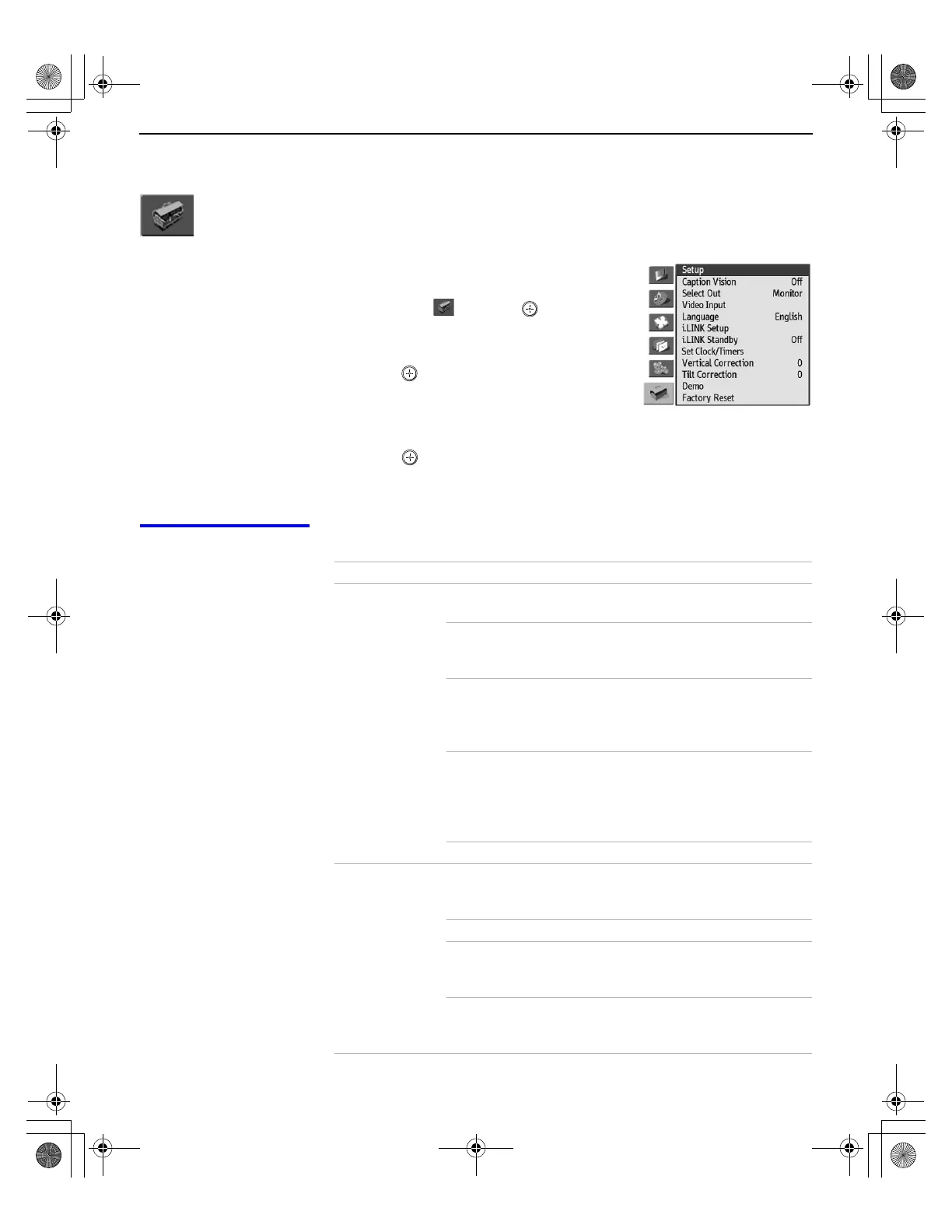 To select the Setup menu